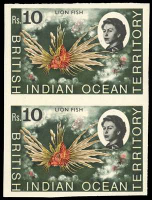1968 10r Lionfish, imperforate pair, unmounted o.g. SG 30a, £1100