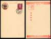 Japanese Occupation. 1945 5yen on 5s claret, type 2 surcharge on Japan, tied to Japanese 1y50 p/s card by ‘20.8.28’ cds, and showing grossly misplaced surcharge, also unused Japanese armed forces free franking card, a fine pair. SG J3 var.