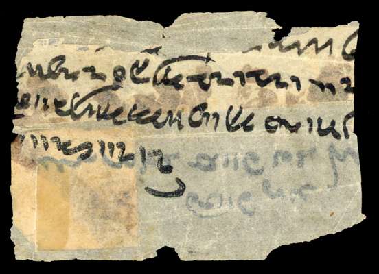 1852 Scinde Dawk ½a white, clear embossing, roughly separated with large margins on three sides, used by part intaglio seal, adhesive stained, reinforced and affixed to fragment piece, still a sound example example of this Indian rarity. SG S1 £3000