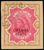 1887-95 2r carmine and yellow-brown, tied to small piece by part 'CHUMBA-STATE/C' hooded obliterator. Only 672 printed, and rare used. SG 19 cat £650