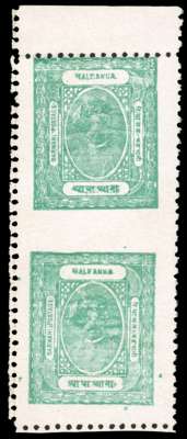 I.F.S. Barwani SG 29ba 1928 ½a vertical pair imperf between mint