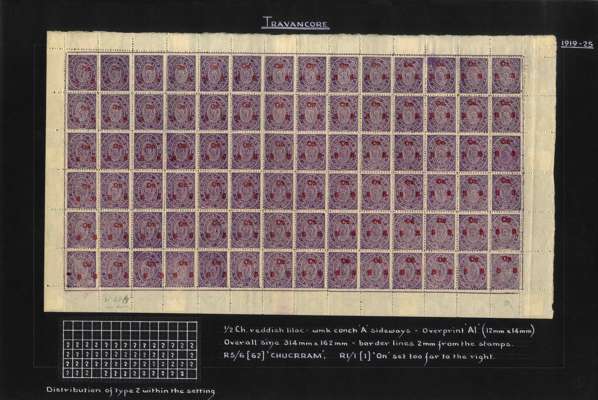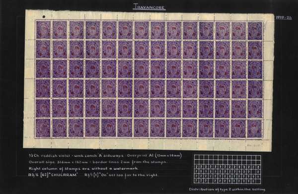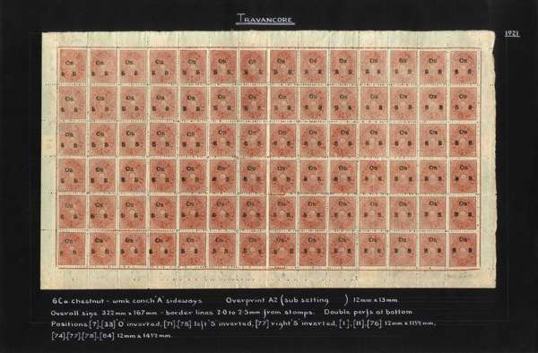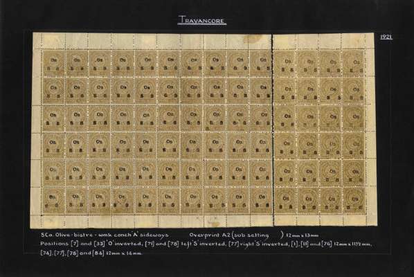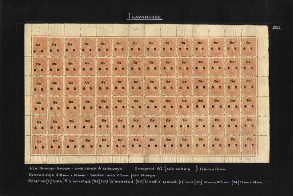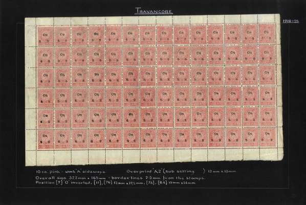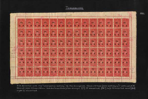 I.F.S. Travancore SG O6/O23 (between) Official sheets (8) unused