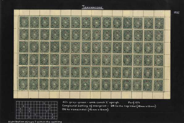 I.F.S. Travancore SG O69Aa/Ba 1937 Official 4ch sheet unused