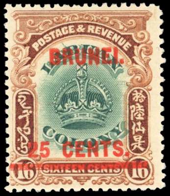 Brunei SG 19a 1906 16c on 25c line through B mint