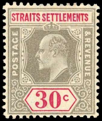Malaya Straits Settlements SG 134a 1904 30c damaged frame and crown mint