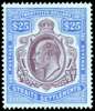 1906-12 $25 purple and blue/blue, wmk MCA, very fine large part o.g. A lovely example of this key high value. SG 168 cat £3750