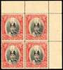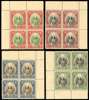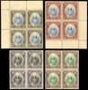 1937 set of 9 to $5, blocks of 4, mint unmounted o.g., toned and a couple of trivial gum blemishes but scarce multiples. SG 60/68, cat £1200+
