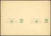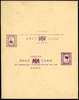 Postal Stationery. 1893 1c+1c and 3c+3c reply cards, three examples comprising 1c purple with the reply half printed double, 1c purple (heavily-inked impression) with the reply half printed double, one being an impression of the 3c card in green, and 3c green uncut pair with the reply half printed on back of message half (unfolded), minor toning and peripheral blemishes but a fascinating trio. (3)