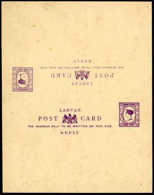 Labuan 1893 1c+1c and 3c+3c reply card group