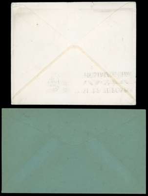 Christmas Island. 1953 (14 MAY) cover to USA bearing 1948-52 20c blue tied by type D10 cds, and 1955 (9 NOV) cover ('Christmas Greetings via Christmas Island.' imprint) to England bearing 1955-59 2c (two pairs - printed matter rate) tied by type D11 cds with Hereford ‘POST EARLY FOR CHRISTMAS’ slogan cancel (19 DEC) at foot, slight faults but a useful pair.