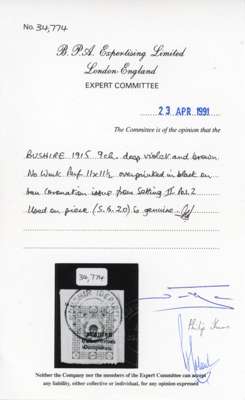 Bushire British Occupation SG 20 1915 Coronation 9ch used on piece