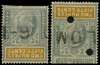 1905 2r50 slate and ochre with watermark MCA showing Crown to right of CA, sound used upper and lower halves, the latter scarce. SG T175w