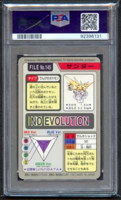 The iconic Carddass cards are very popular due to their unique never before seen artworks of Gen 1 Pokémon. Zapdos has zappy feet in this PSA 9 example!