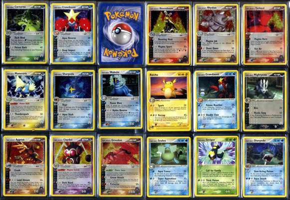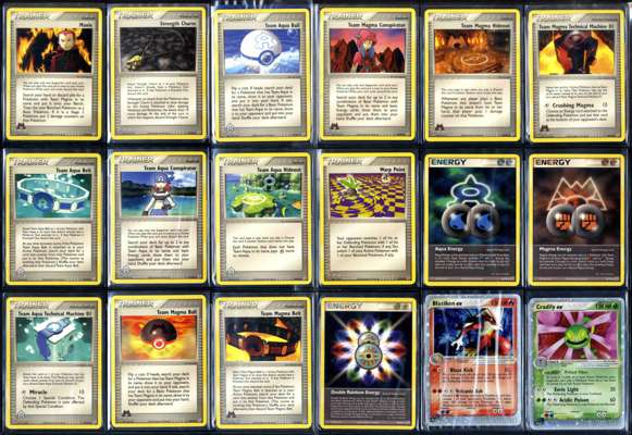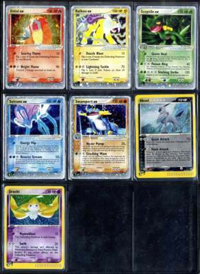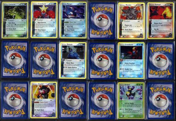 A near complete EX Team Magma vs Team Aqua expansion, only missing Team Aqua's Kyogre 3/95. Also includes a selection fo Reverse Holo cards. All cards are in Excellent to Near Mint conditions.