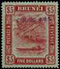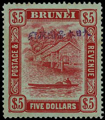 Japanese Occupation. 1942-4 $5 carmine on green paper large part o.g., fine. BPA Certificate (1995). SG J18, £1000