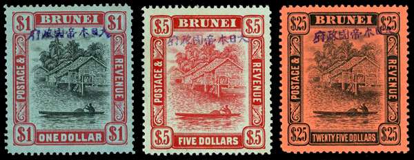 1942-4 set of nineteen, unmounted o,g, Mainly fine with some toning and tropicalised patches on the reverse, as with the 6c scarlet (Ceremuga Certificate, 2007) and the 8c grey (clear BPA Certificates, 1996 and 2009); the $5 signed Rowell and with Brandon Certificate (2003), the $25 with slightly dried gum as usual. Fine for this set, which is seldom seen in unmounted condition. SG J1-19, £3892