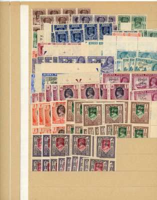 1947 Interim Government small quantity on manilla stocksheet, o.g. with the vast majority unmounted, 20+ sets including blocks. Gum a bit variable, from cream to white. SG 68-82, £1100+