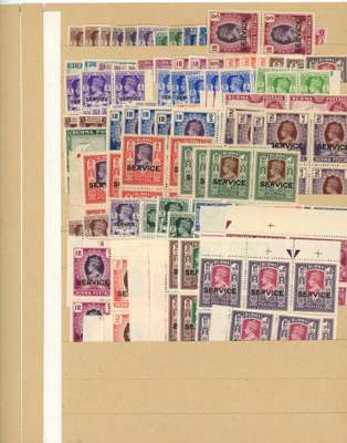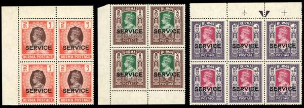Officials. 1939 set in blocks of four plus numerous extras of most ex 2a6p, with fourteen 10r in all; 1946 set with at least eight of each. All o.g. with mixed gum, but most are good to fine, very high catalogue value. SG O15-40