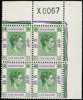 1953 $5 yellowish green and violet top right corner block of four with Requisition X, unmounted o.g. R2/6 RP damaged lower right character. SG 160ab, £520