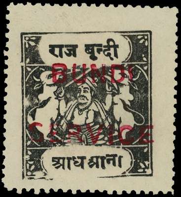 Officials. 1915-41 ½a black perf 11, tablet Type H, large English overprint in red, large part o.g. SG O48aC, £500
