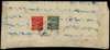 1930-45 ½a red and 2a greyish green used on reverse of native cover, ted by unclear cancel. The 2a with a sizeable printing flaw at left obliterating the HAR of CHARKARI; minor wrinkling. SG 37, 43c, £410 off cover, £1230 with the cover factor