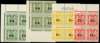 Postal Fiscals. 1942-53 3/6d on 3/6d Types I and II, 11/- on 11/- and 22/- on 22/-, watermark Multiple Star upright. Unmounted o.g. marginal blocks of four, the gum more or less two-toned. 3/6d Type I block only slightly affected, Type II quite severe, 11/- barely affected and the 22/- quite fair with the top left stamp slightly affected. SG F212-3, 215-6, £2668