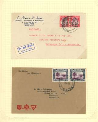 1945-8 commercial airmail covers from an Australian officer with the British Military Administration in Borneo to his wife in Melbourne, with a mix of BMA and Cypher stamps, two with N Borneo/Sarawak combination frankings, a variety of postmarks including Base Army Post Office