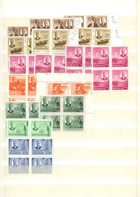 1950-2 set in unmounted o.g. blocks of four. With duplicate blocks of all values to $2 sae the 8c, many of these with reprint dates on the selvedge, a useful resource for the specialist. SG 356-370, £887