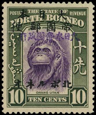 Japanese Occupation. 1944 10c violet and bronze-green handstamped Type 1 in violet and overprinted Type 4, unmounted o.g. BPA Certificate (1965). SG J26a, £500