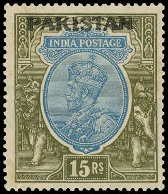 1948 handstamps on India. 1926 15r watermark Multiple Star with Peshawar metal handstamp in black, unmounted o.g. which is lightly toned. D&I H306