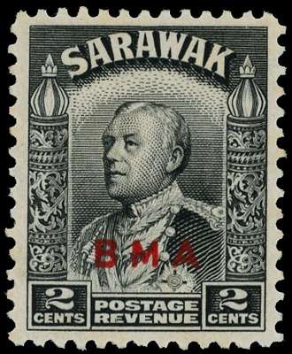 1945 BMA 2c black with overprint double, mint with large part original gum, some light foxing on the reverse. KG VI Expertising Certificate (2012). A rare stamp with very fine appearance. SG 127a, £8500