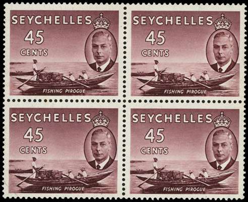 1952 45c purple-brown block of four, lower right stamp with St Edward's Crown in watermark. Unmounted o.g. SG 166b, £475