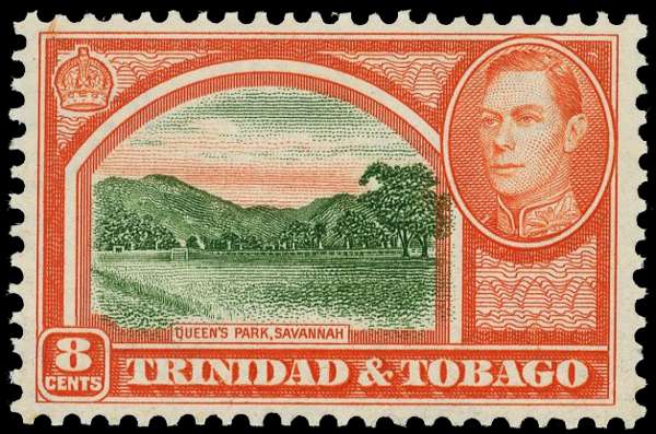1938-44 8c sage-green and vermilion showing complete omission of ‘A’ of CA in watermark, large part o.g., very lightly hinged. SG 251a, £950