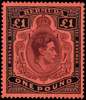 1943 £1 deep reddish purple and black on pale red paper, HPF #17 gash in chin (and FF #17 broken shading), large part o.g. SG 121cf, £2000