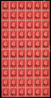 1942 Nairobi round and square stops overprint, mint 6 x 10 block being the complete setting. Some splitting (R10/2 separated) and numerous peripheral hinges but an exceptional and rare multiple. SG M6a (24) and 6b (18), £4752