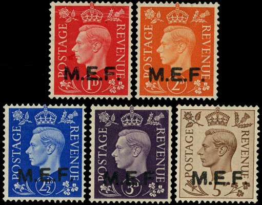 1942 Nairobi overprints round stops set of five, large part o.g. (very lightly hinged), fine. SG M6a-10a, £700