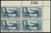 1938 printing of 1/- dull greenish blue top right corner block of four with sheet number, the stamps unmounted o.g. SG 158a, £240