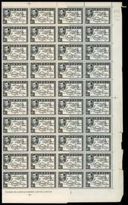 1940 6d black Die II, perf 13½. Complete mint sheet of sixty, unmounted o.g., folded between second and third columns. The selvedge a bit ratty in places, otherwise fine and an excellent opportunity for study. SG 261, £660
