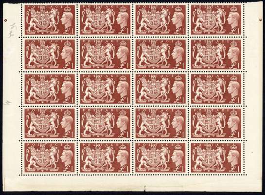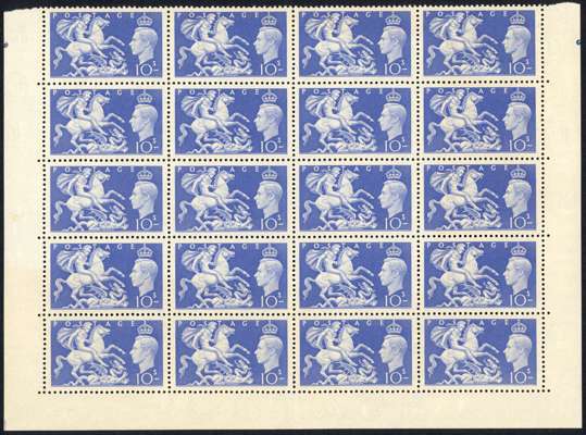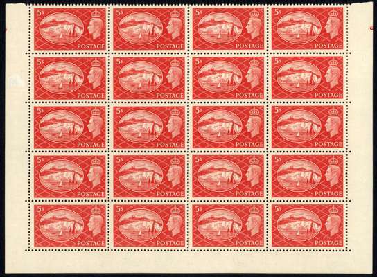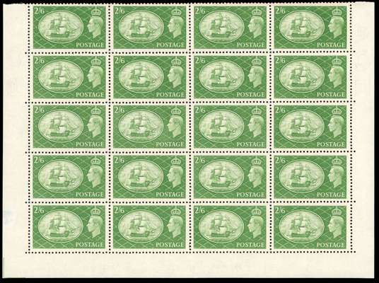 1951 Festival high values in unmounted o.g. blocks of twenty, the bottom five rows of the sheets. Gum slightly discoloured and a few bends, the £1 with lower selvedge creased, otherwise fine. SG 509-512, £2000