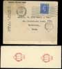 Postal History. 1944 envelope with re-seal label from London to Beckenham with a fine strike of the rare ‘Bomb’ handstamp DELAYED BY ENEMY ACTION. The adhesive damaged and the label slightly stained at upper left, but genuine examples of the handstamp are rare. Also two proof strikes of the handstamp (apparently different) in red on a single piece. Ex George Crabb and John Daynes