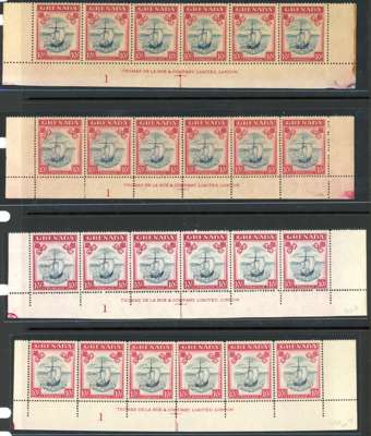 Grenada SG 163, a, d, e Plate/imprint strips mint