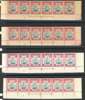 1938-43 10/- bottom marginal strips of six with Plate number and imprint; SG 163, 163a (reinforced by small hinge between fourth and fifth stamps), 163d and 163e. Unmounted o.g. apart from the reinforcement. Catalogued £2910