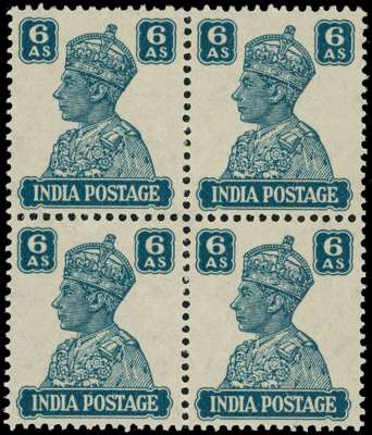 1940-3 6a turquoise-green with inverted watermark block of four, unmounted o.g. SG 274w, £900