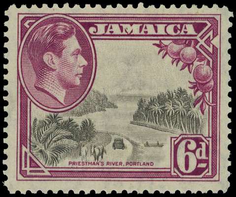 1938-52 6d grey and purple perf 12½ unmounted o.g., showing very strong doubling in the lower half of the vignette. BPA Certificate (1993), ‘It did not go through the press twice.’ Nonetheless a striking variety. SG 128 var