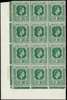 1949 1d blue-green corner block of twelve, R7/3 LP DI flaw, unmounted o.g. SG 100a, £250
