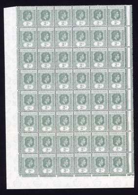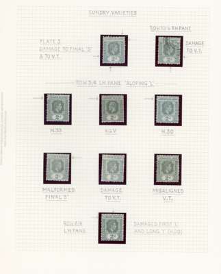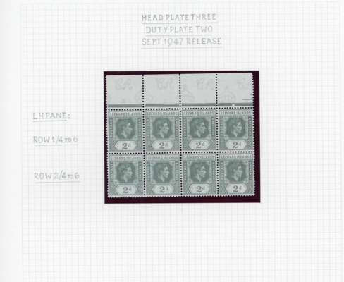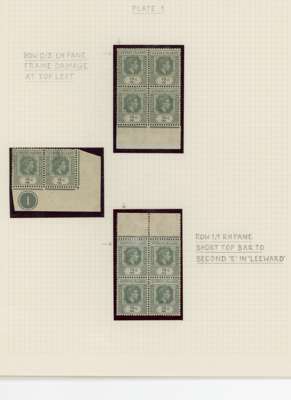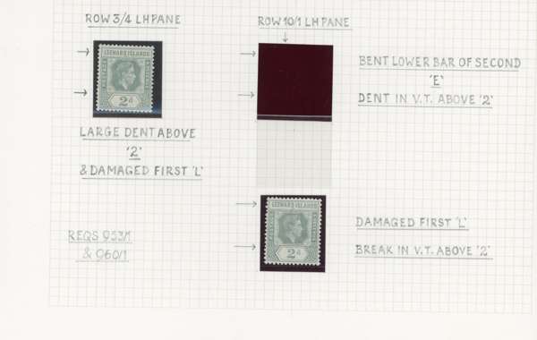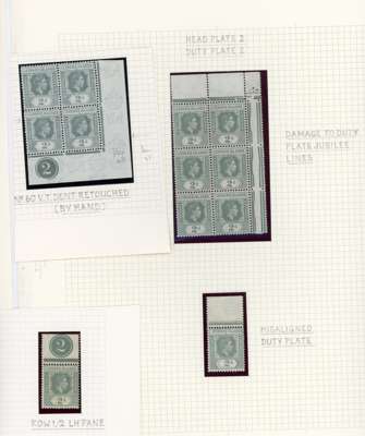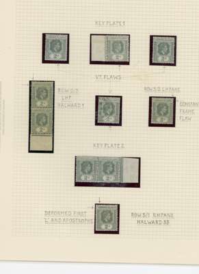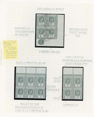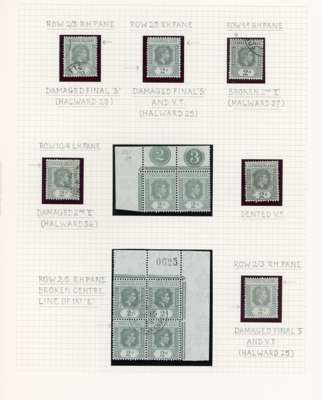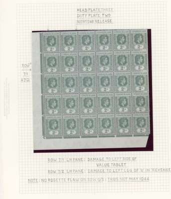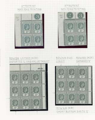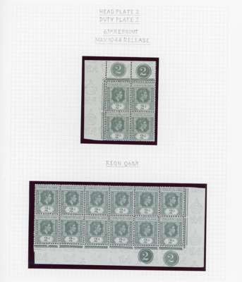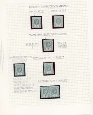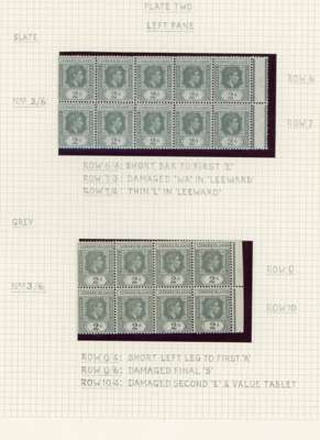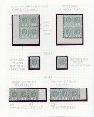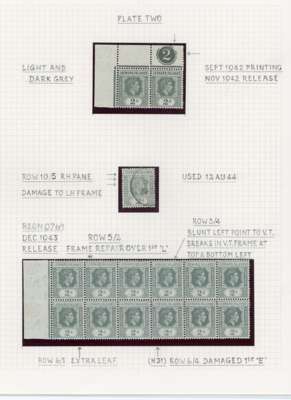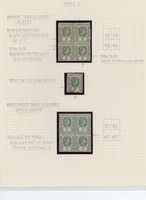 1938-49 2d grey study (318) on leaves, beautifully written up, the great majority mint including blocks of up to 48. Many major flaws are present including hand-retouching. We note August 42 block with R10/5 RP serrated edge (SG 103a, the variety stamp unmounted) and a used single; November 42 unmounted block of ten with the same variety, plenty of plate blocks and other large plate flaws. A fine collection, ex Harold Green. SG 103-ba