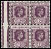 1947 6d deep purple and red-purple. Block of four with interpanneau margin at left, R3/1 RP break in base of value tablet, 4/1 broken ‘E’. Large part o.g., the lower pair including the broken ‘E’ unmounted. Ex Harold Green. SG 109b, ba, £810