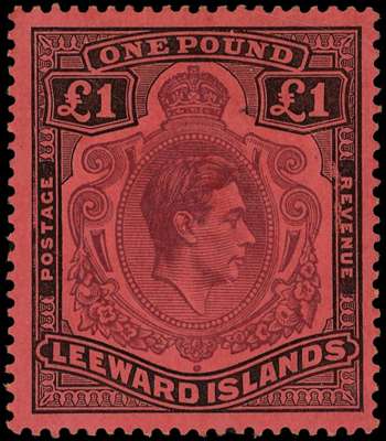 1942 (Feb.) £1 deep purple and black on carmine-red paper, large part o.g. with HPF #17 gash in chin; very scarce on this printing. SG 114af, £2000