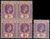 1938 3c reddish purple and scarlet block of four, lower right stamp with R2/2 RP sliced ‘S’, and 1943 3c reddish lilac and red with the same variety, each unmounted o.g. SG 253a, da. £310
