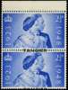 Tangier. 1948 Silver Wedding 2½d ultramarine top marginal vertical pair, overprint misplaced downwards, appearing between the stamps. Reinforced between top stamp and selvedge. Fine and spectacular. SG 255 var
